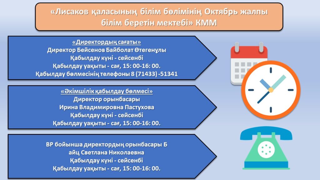 КГУ "Октябрьская общеобразовательная школа" > Новости > 2025-2026 оқу жылына арналған мектеп әкімшілігінің азаматтарды қабылдау кестесі/ график приема граждан администрацией школы на 2025-2026 учебный год
