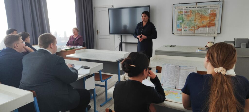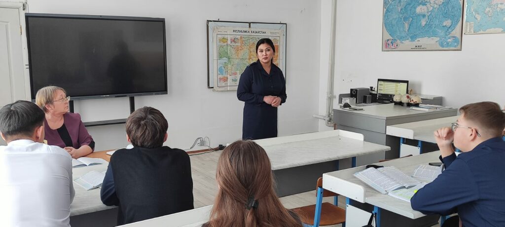 Лейтенант полиции по ДН ГЮП ОМПС ОП г. Лисаковска Оспанова Саида Сериковна, 12.02.2026г провела разъяснительную беседу по теме: «Мои права и ответственность» с учащимися 10 «А», 9 «А», 8 «А» классов КГУ «Октябрьская общеобразовательная школа отдела образования города Лисаковска» УОАКО