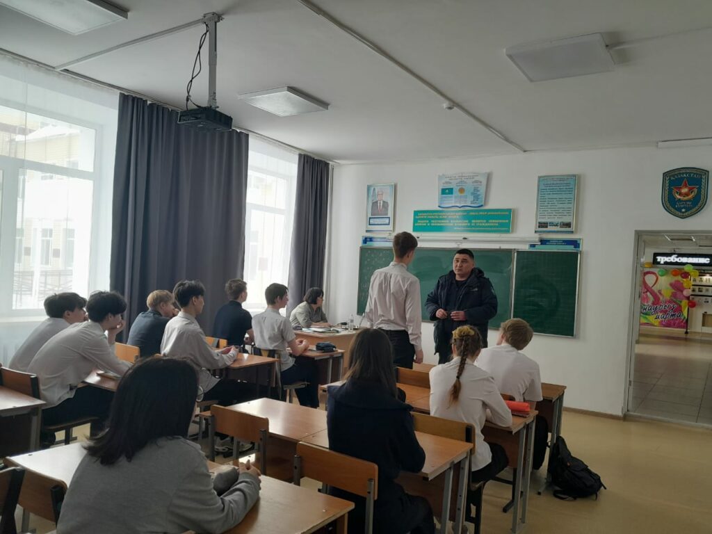 Старший УИП, ОП г.Лисаковска, майор полиции Игымбердиев Данабек Мергенбаевич, 04.03.2026г провел профилактическую беседу по теме: «Мелкое хулиганство» с учащимися 9 «Б» класса КГУ «Октябрьская общеобразовательная школа отдела образования города Лисаковска» УОАКО
